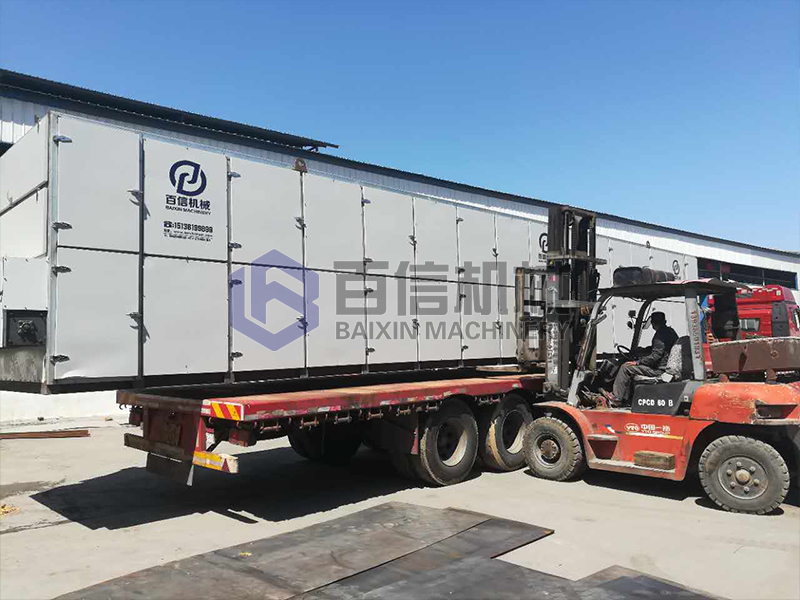 2、開機前先檢查烘干機各項是否正常,箱內是否有導物,鏈條轉動方向是否正確,空轉10分鐘以上等溫度達到物料烘干相應溫度后再上料。